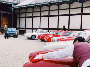 最終日は雨になりましたが、世界遺産である二条城には雨、桜、名車と、一場面一場面に風情があり、それもまた絵になる光景でございました。
